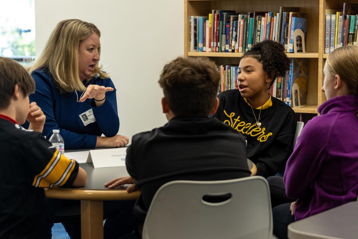 Dickson teacher Ms. Karianne Lis arranged the visit through the Steelers STEM program, which is sponsored by U.S. Steel, FedEx, Shell Polymers, and Wabtec. The goal of the program is to empower students to explore STEM concepts through a variety of experiences, including classroom visits like the one on Tuesday. Ms. Lis was connected to the program through her students’ use of EverFi, which offers curriculum that includes an exploration of STEM careers.