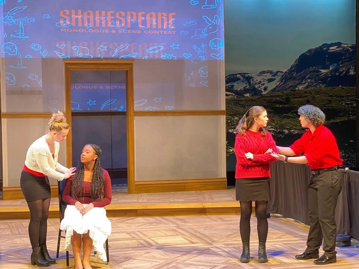 The performance of Act III, Scene V of "Romeo and Juliet" was part of Pittsburgh Public Theater's 32nd Annual Shakespeare Monologue and Scene Contest. Senior Calise Cowans-Rini (Juliet), junior Jae Saunders (Lord Capulet), junior Noelle Brubaker (Lady Capulet), and sophomore Elizabeth Ansell (Nurse) stunned the audience and judges with a powerful, intense portrayal of Juliet's steadfast refusal to marry Count Paris and insistence of marrying Romeo, much to the anger and disbelief of her parents.