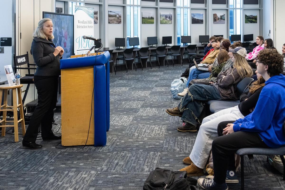The Woodland Hills High School Library was honored to welcome Pulitzer Prize-winning photojournalist Martha Rial to the high school on Wednesday, March 18 as the latest guest in the Woodland Hills Interaction Series.